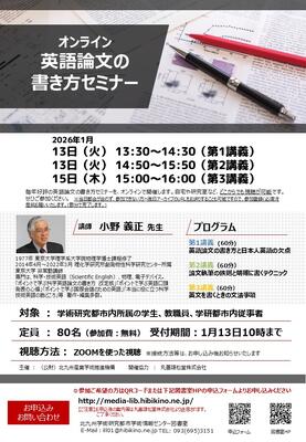学習や研究活動において、英語での論文作成は欠かせないものとなっています。このセミナーで論文作成のノウハウを学んでみませんか?また指導にあたられる先生方も、ぜひご参加ください!