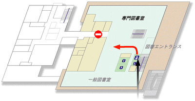 時間外の入退室は、学術情報センター1F安全管理室横のサブエントランスをご利用ください。(2Fの図書エントランスからは入退室はできません。)